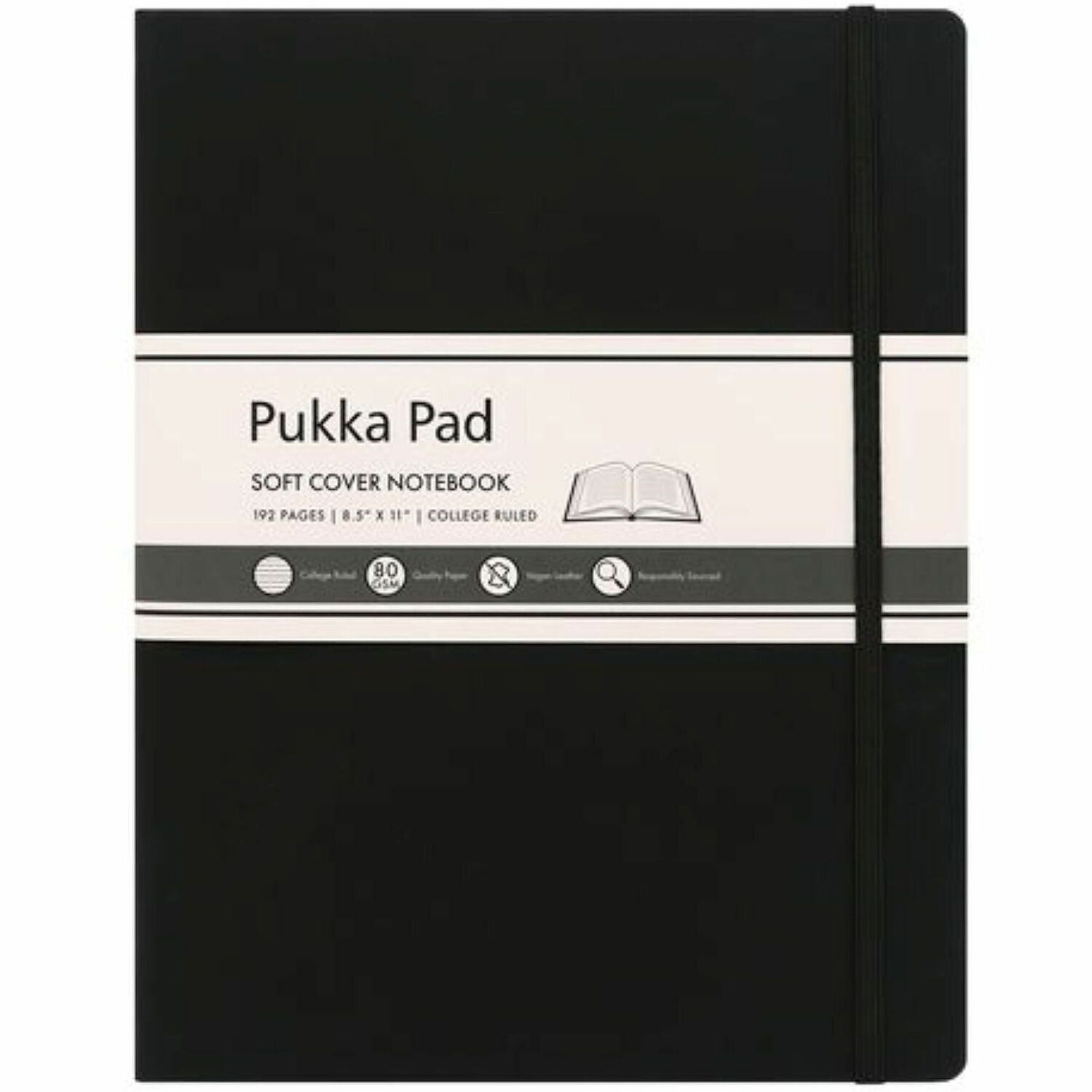 1 Subject(s) - 96 Sheets - 192 Pages - Casebound/Sewn - College Ruled Front Ruling - Ruled Margin - 80 g/m² Grammage - Letter - 8 1/2" x 11" Sheet Size - Cream Paper - Black Vegan Leather Cover - Soft Cover, Note Section, Undated, Pocket, Acid-free Paper, Expandable Pocket, Elastic Closure - 1 Each
