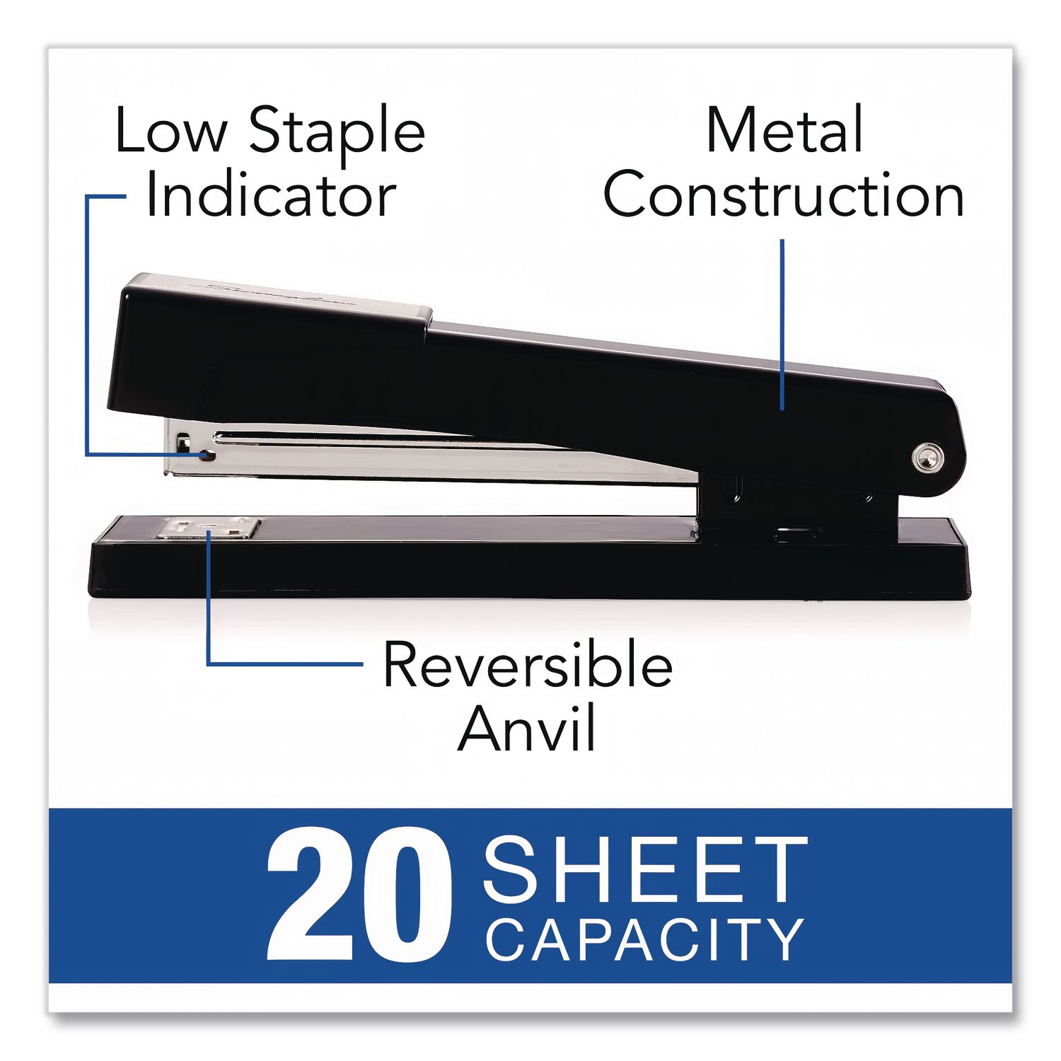 Light- Duty Full Strip Desk Stapler, 20- Sheet Capacity, Black